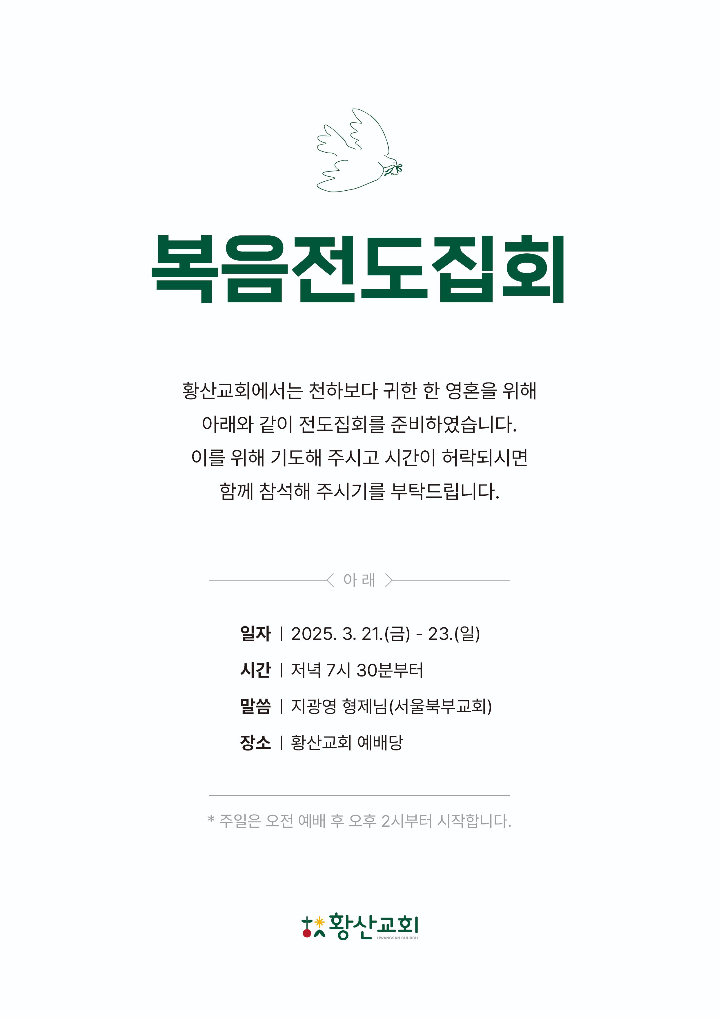 [복음집회] 황산교회 복음집회안내 3월21일~3월23일