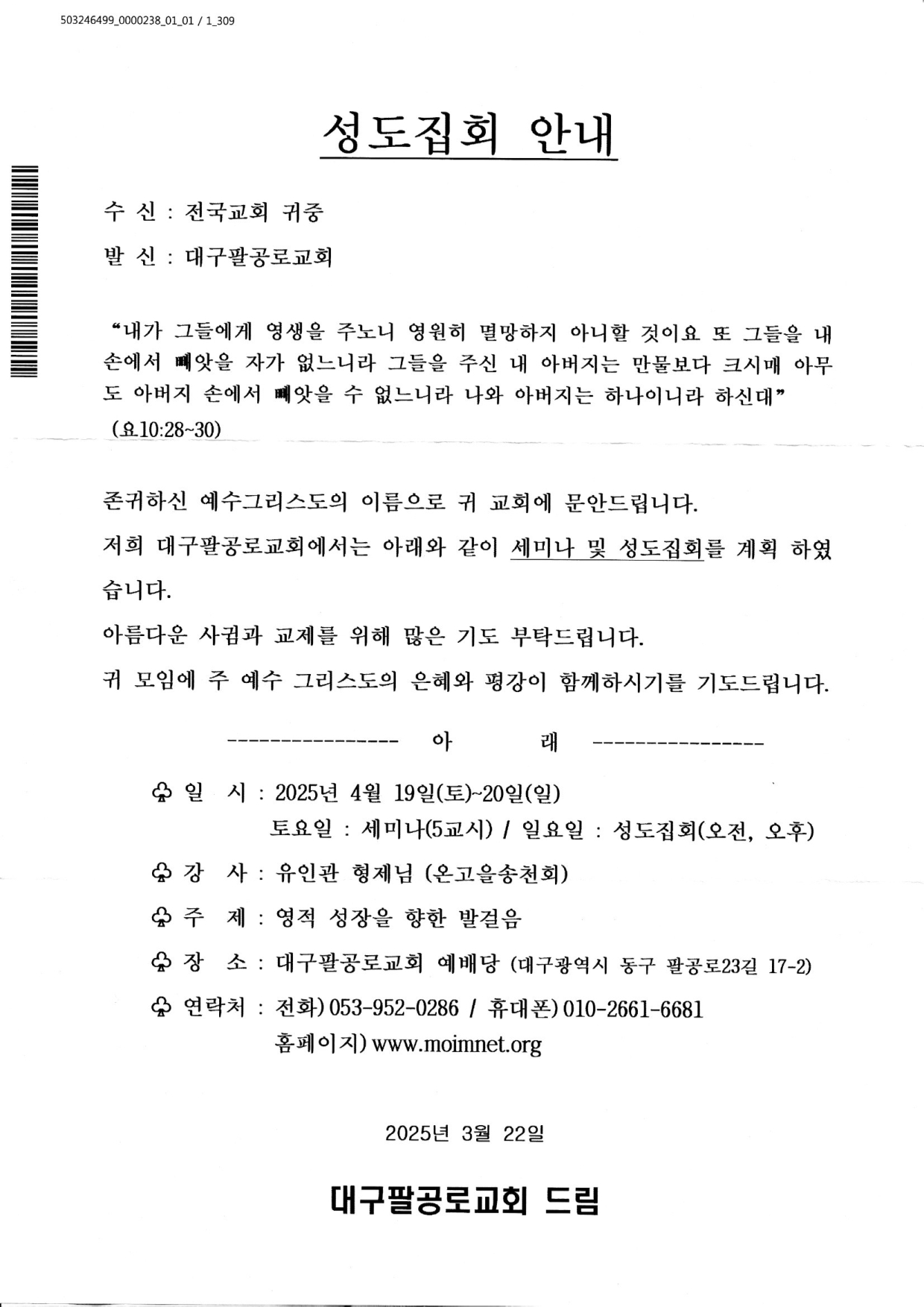[성도집회] 대구팔공로교회 (4월 19-20일)