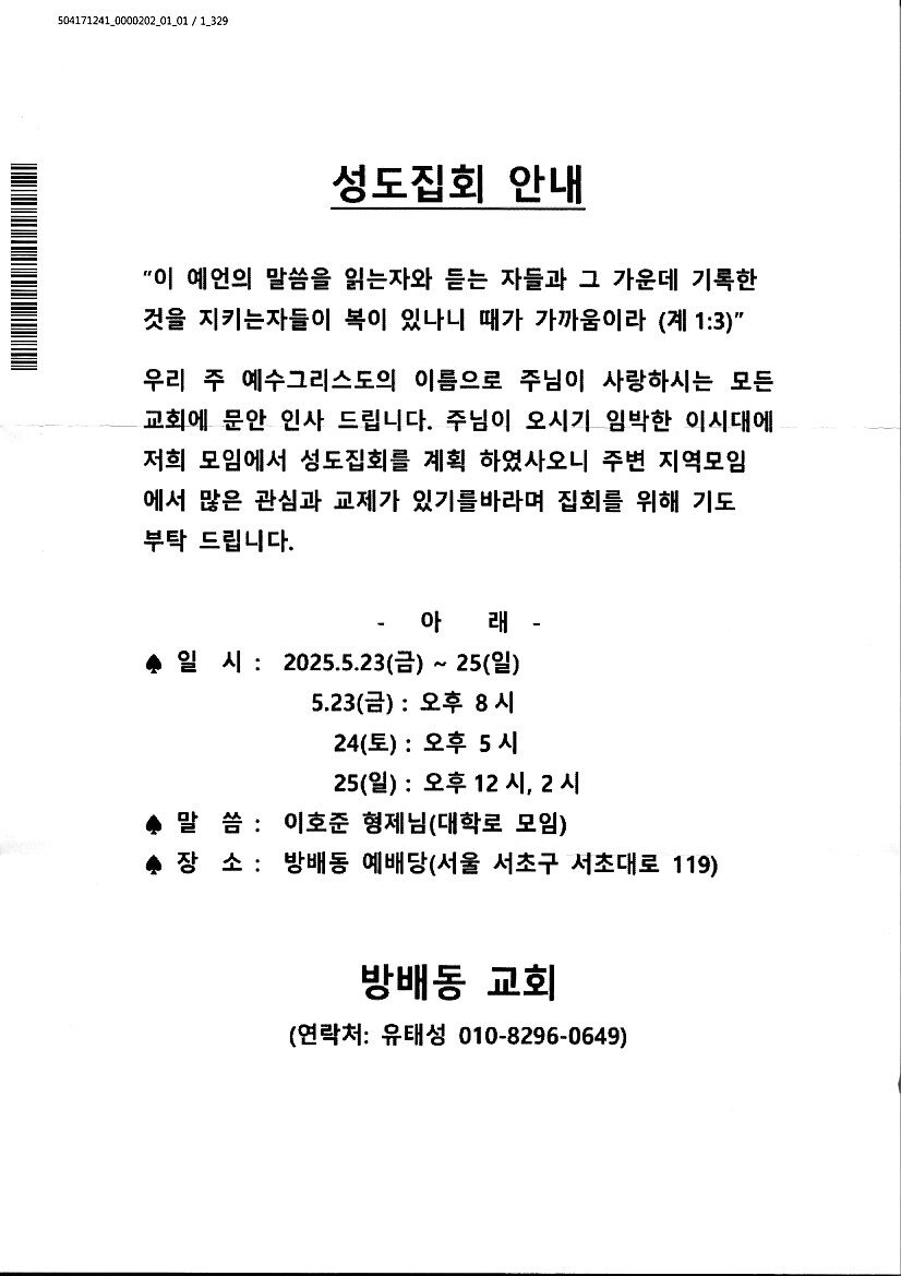 [성도집회] 방배동교회 (5월 23-25일)