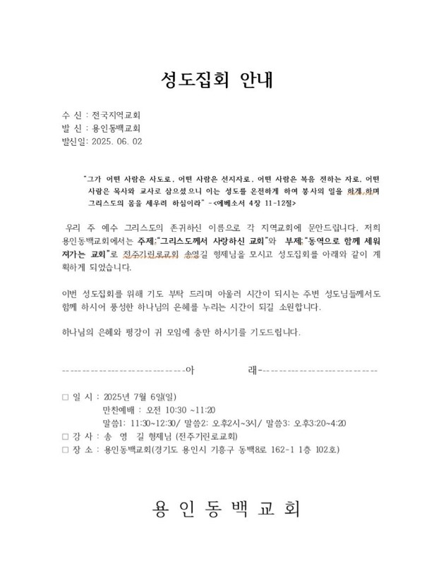 [성도집회] 용인동백교회 (7월 6일)