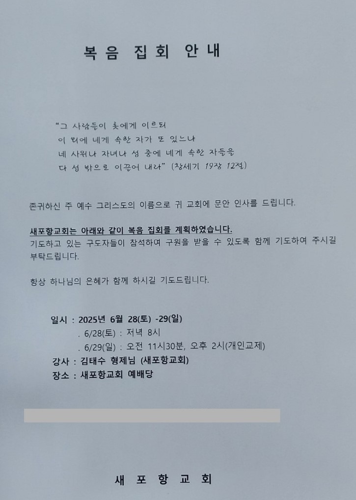 [복음집회] 새포항교회 (6월 28-29일)