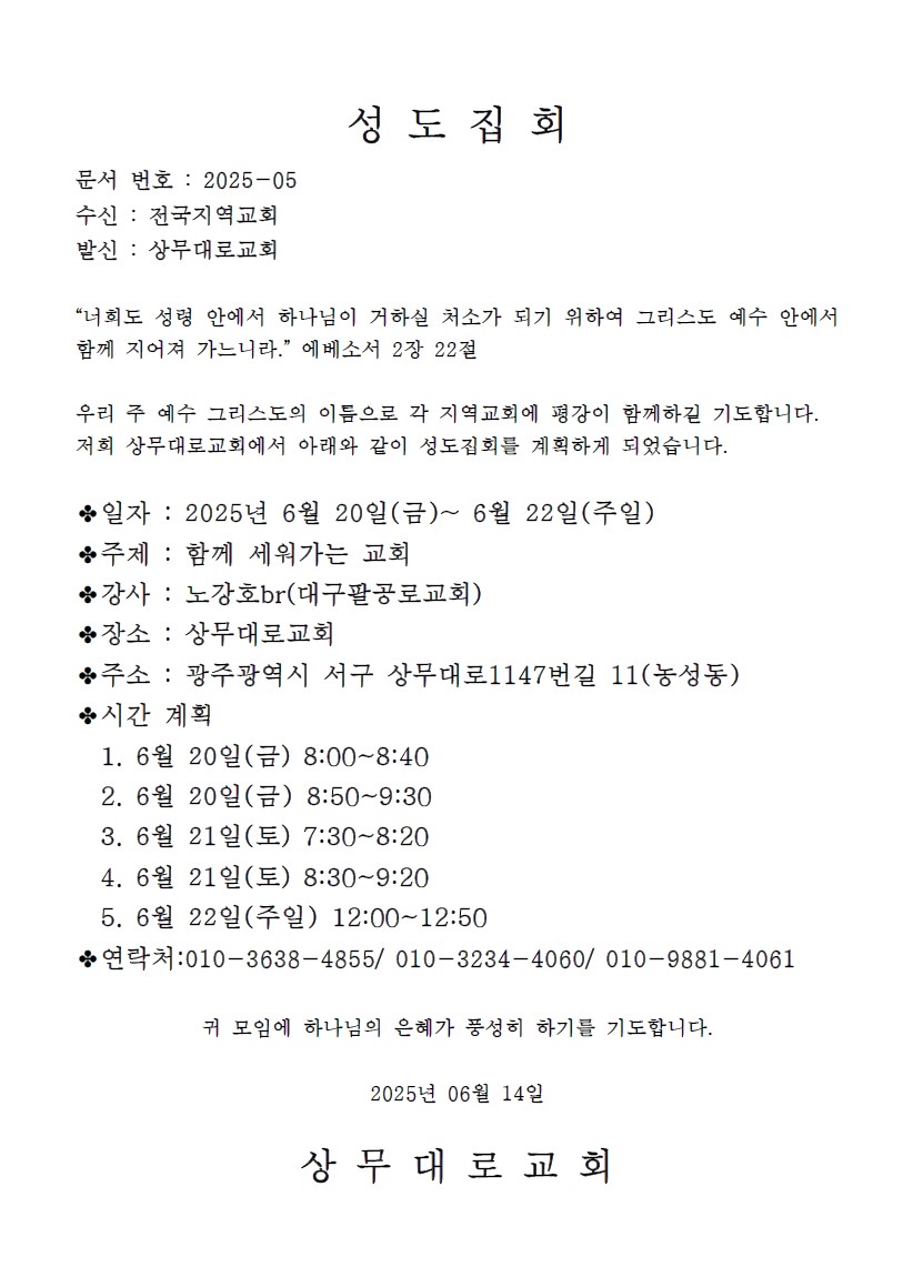 [성도집회] 상무대로교회 (6월 20-22일)