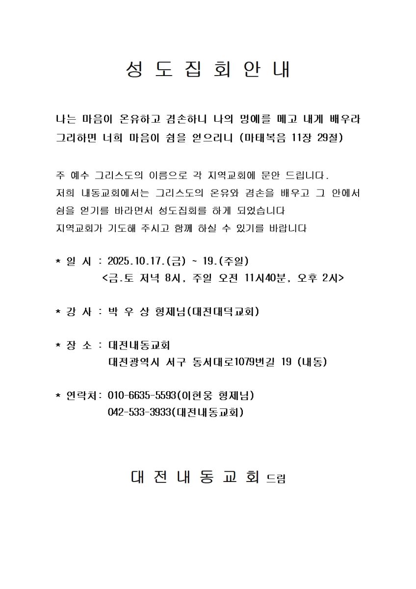 [성도집회] 대전내동교회 (10월 17-19일)