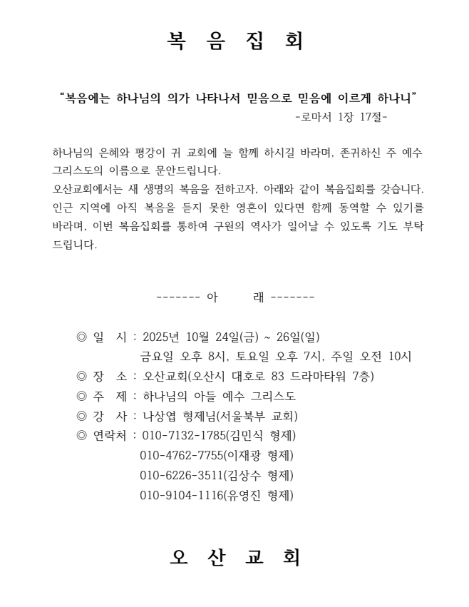 [복음집회] 오산교회 (10월 24일 ~ 26일)
