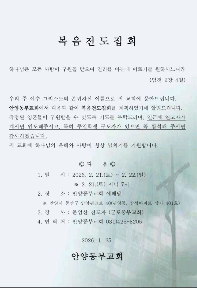 [복음집회] 안양동부교회 (2월 21-22일)