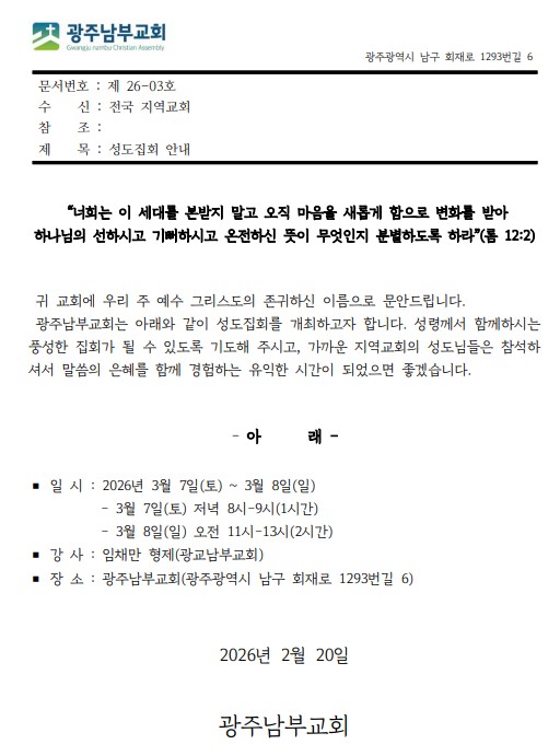 [성도집회] 광주남부교회 (3월 7-8일)