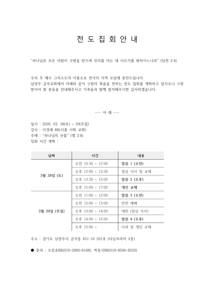 [복음집회] 남양주금곡교회 (3월 28-29일)