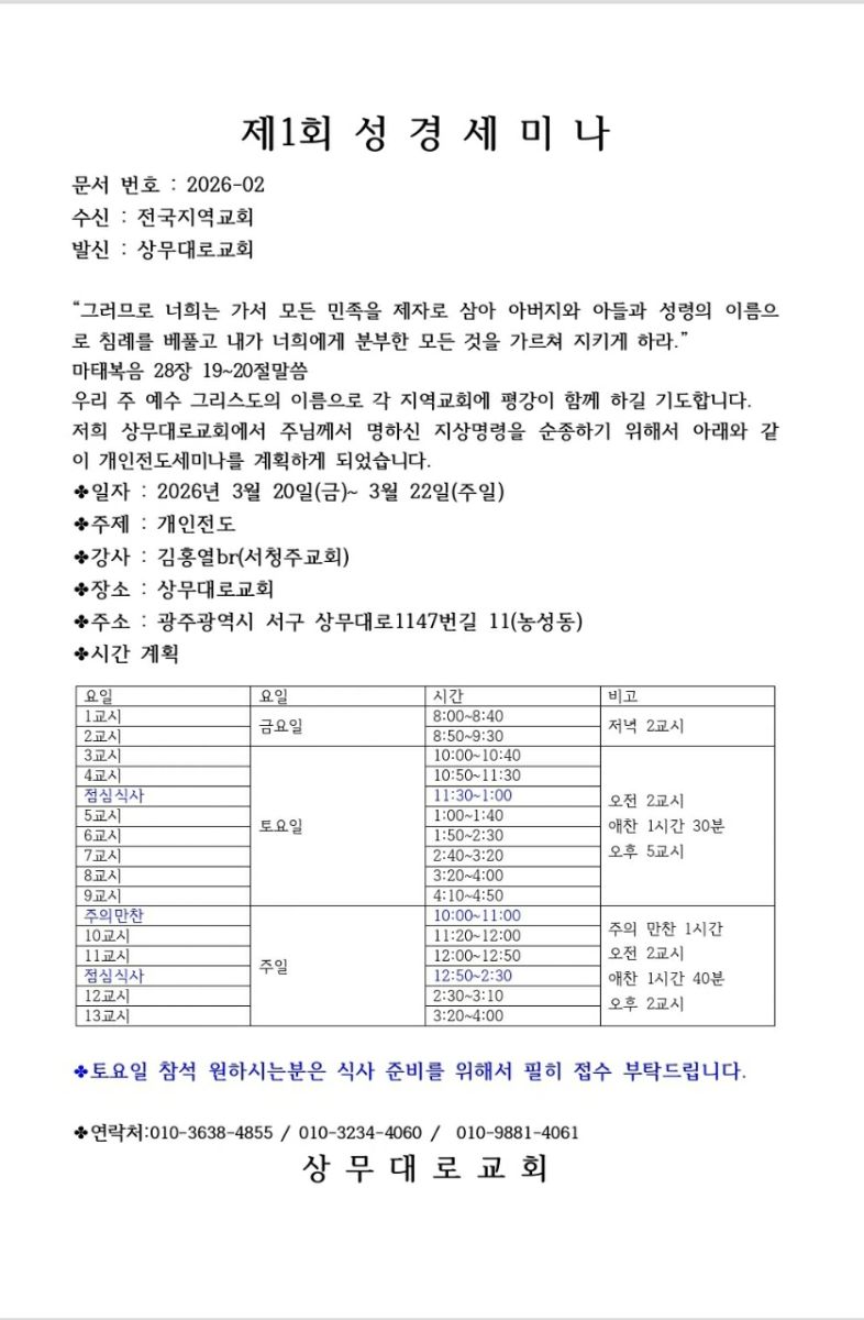 [성도집회] 상무대로교회_개인전도 (3월 20-22일)