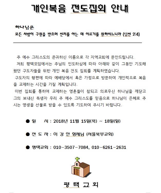 [복음집회] 평택교회(11월15~18일)