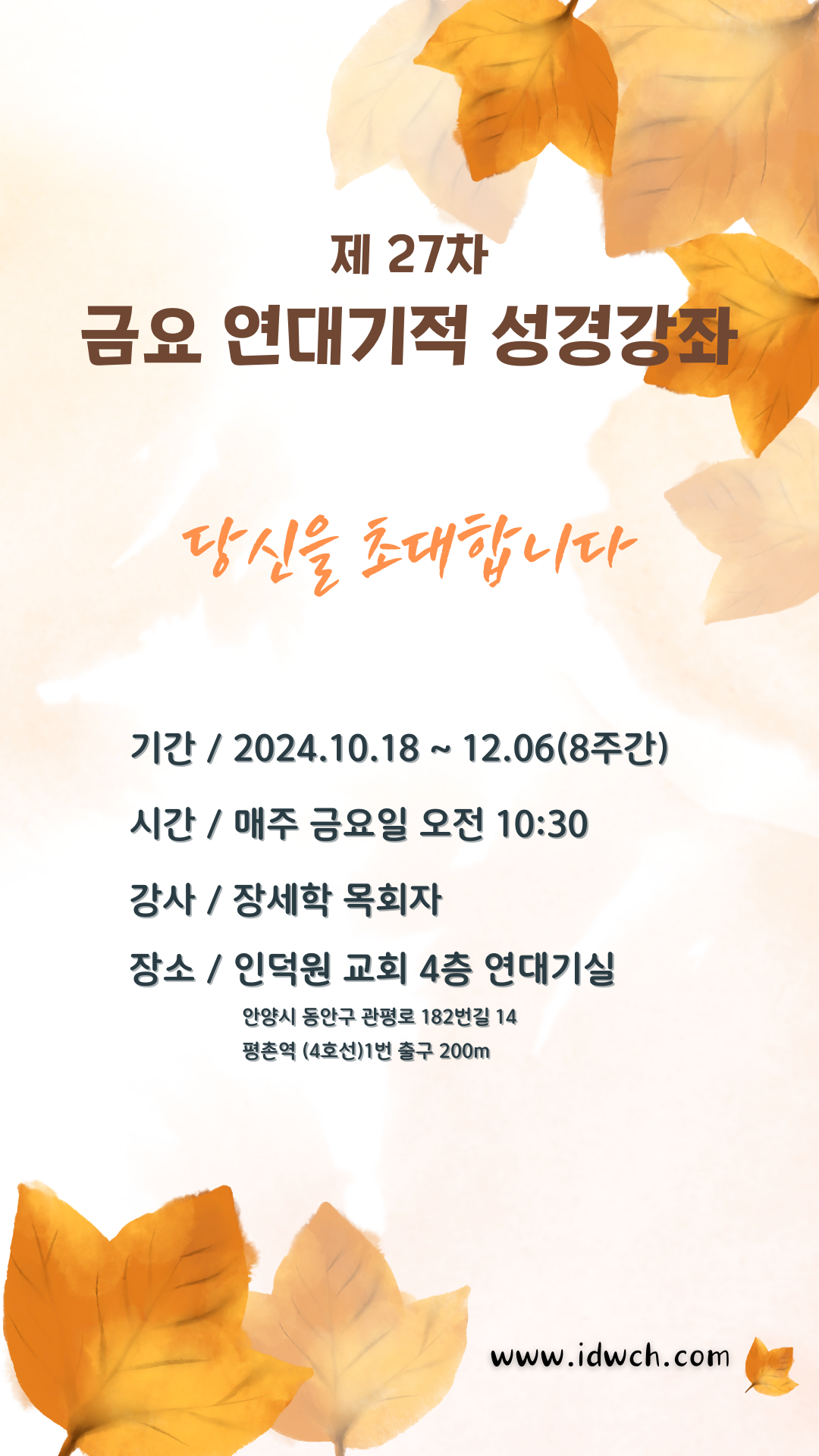 [복음집회] 인덕원교회 금요연대기적 성경강좌(10.18~12.6)