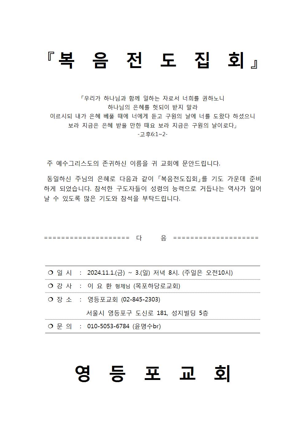 [복음집회] 영등포교회 복음집회(11/1~11/3)