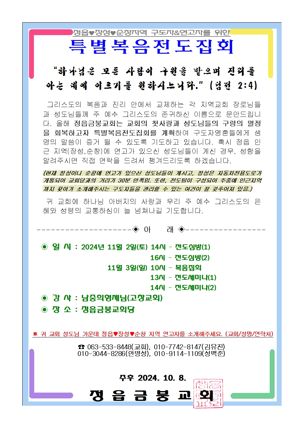 [복음집회] ♥정읍금붕교회 (11.2~3)