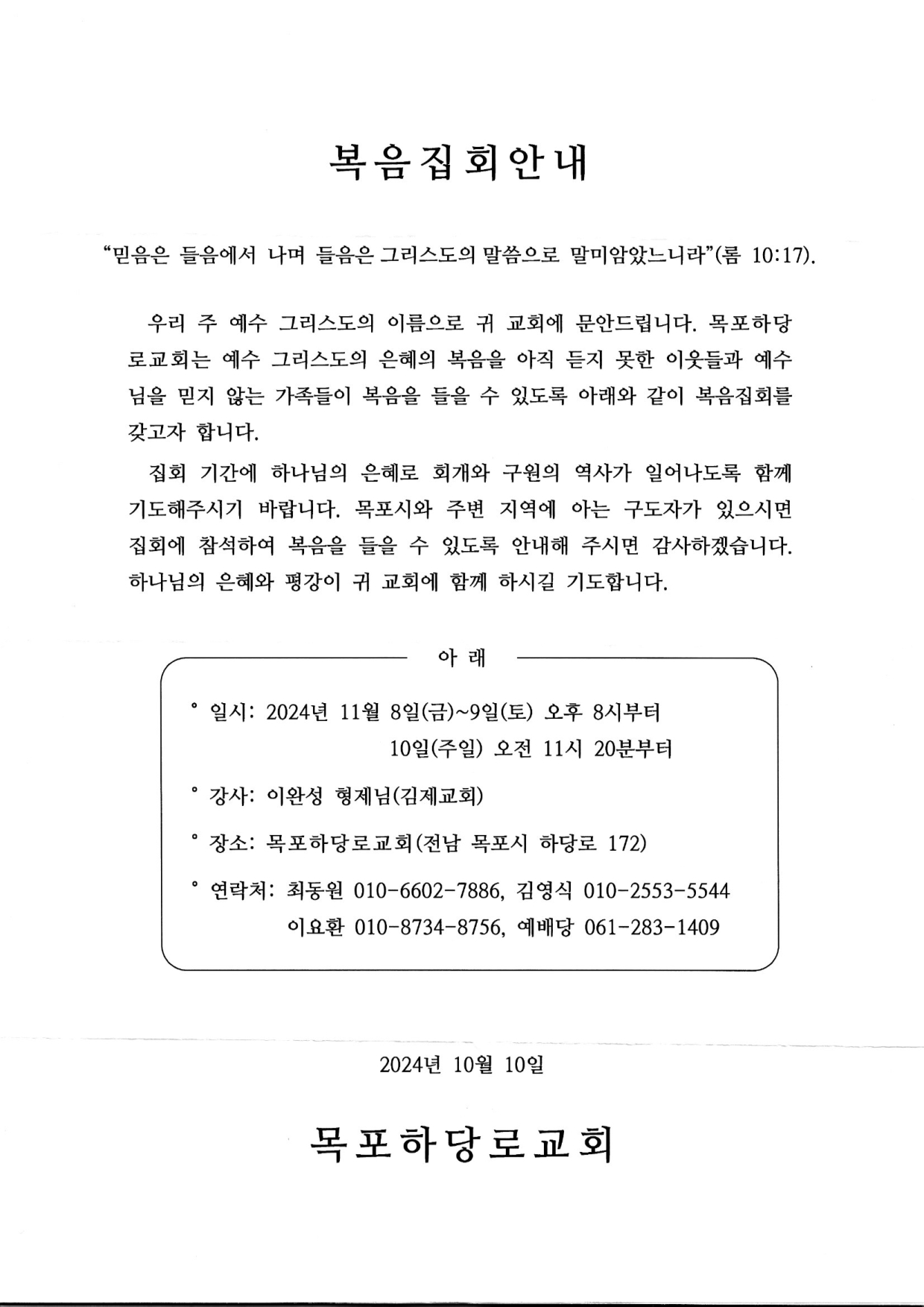 [복음집회] 목포하당로교회 (11월 8-9일)