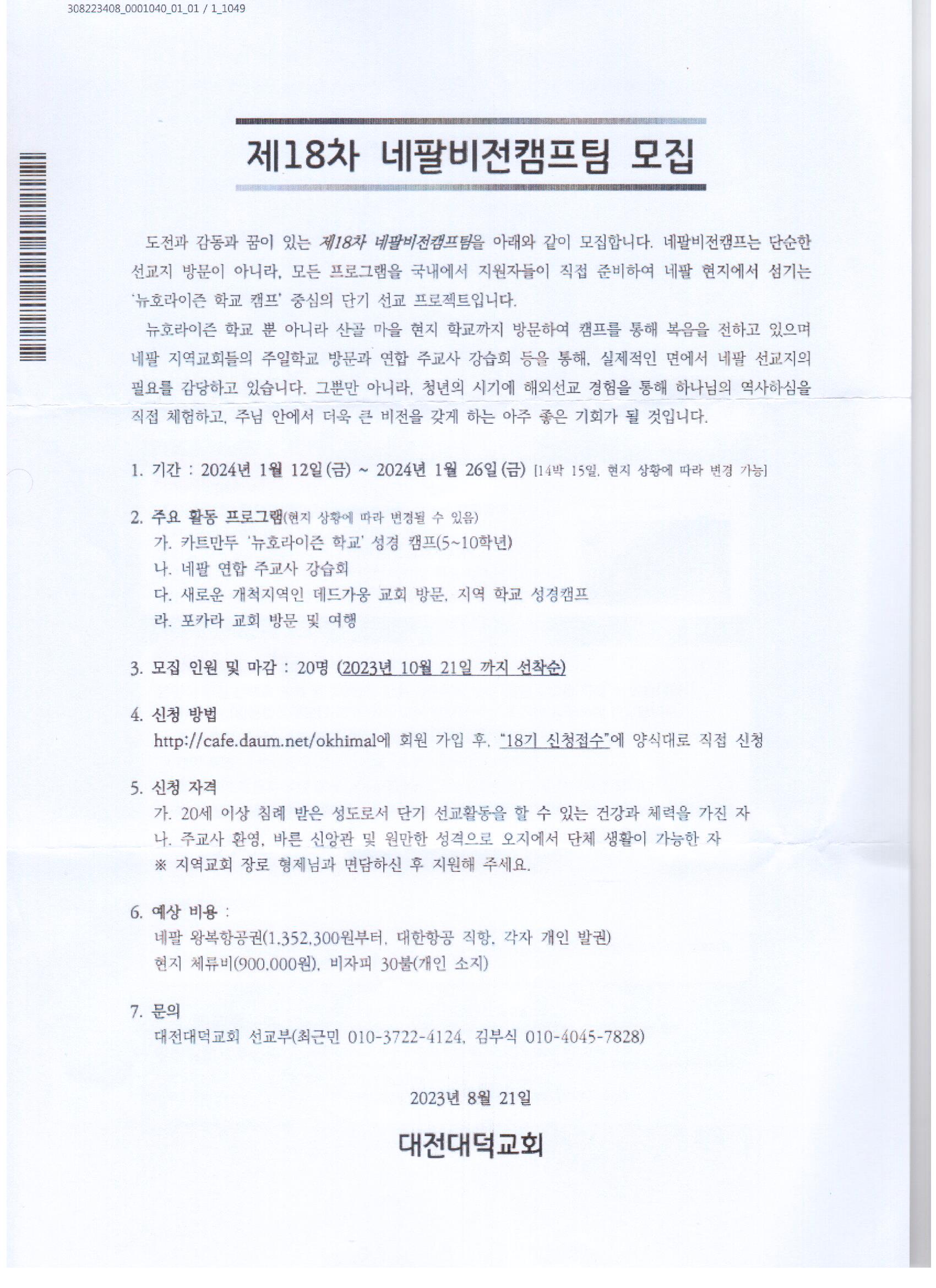 [선교] 18차 네팔비전캠프팀 모집 (1월 12-26일)
