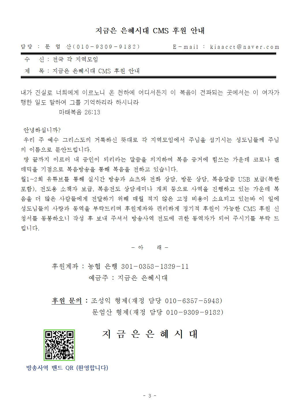 [선교] 복음방송 사역(지금은 은혜시대) CMS 후원안내