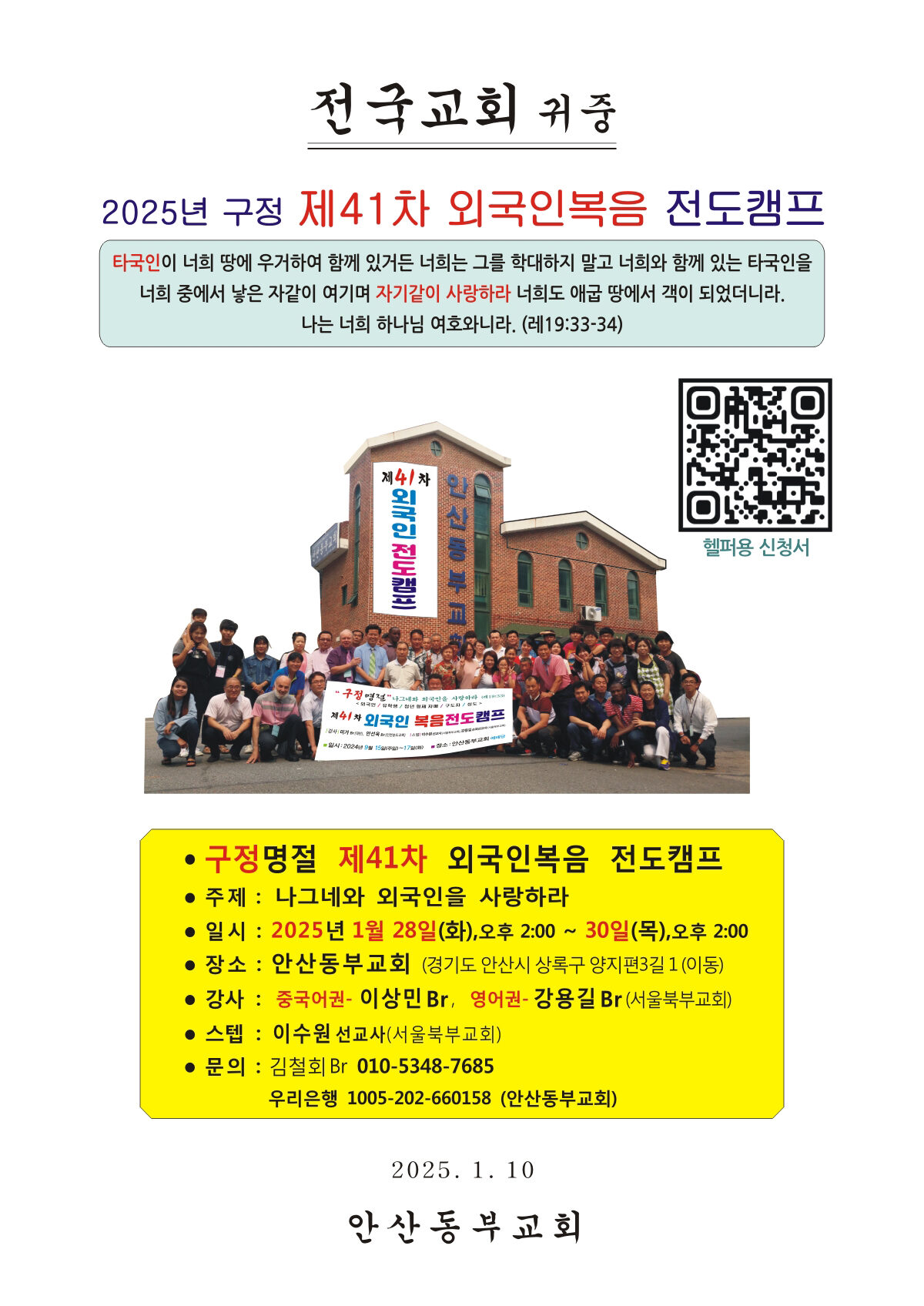 [지역교회] 제41차(구정)외국인복음캠프 안내