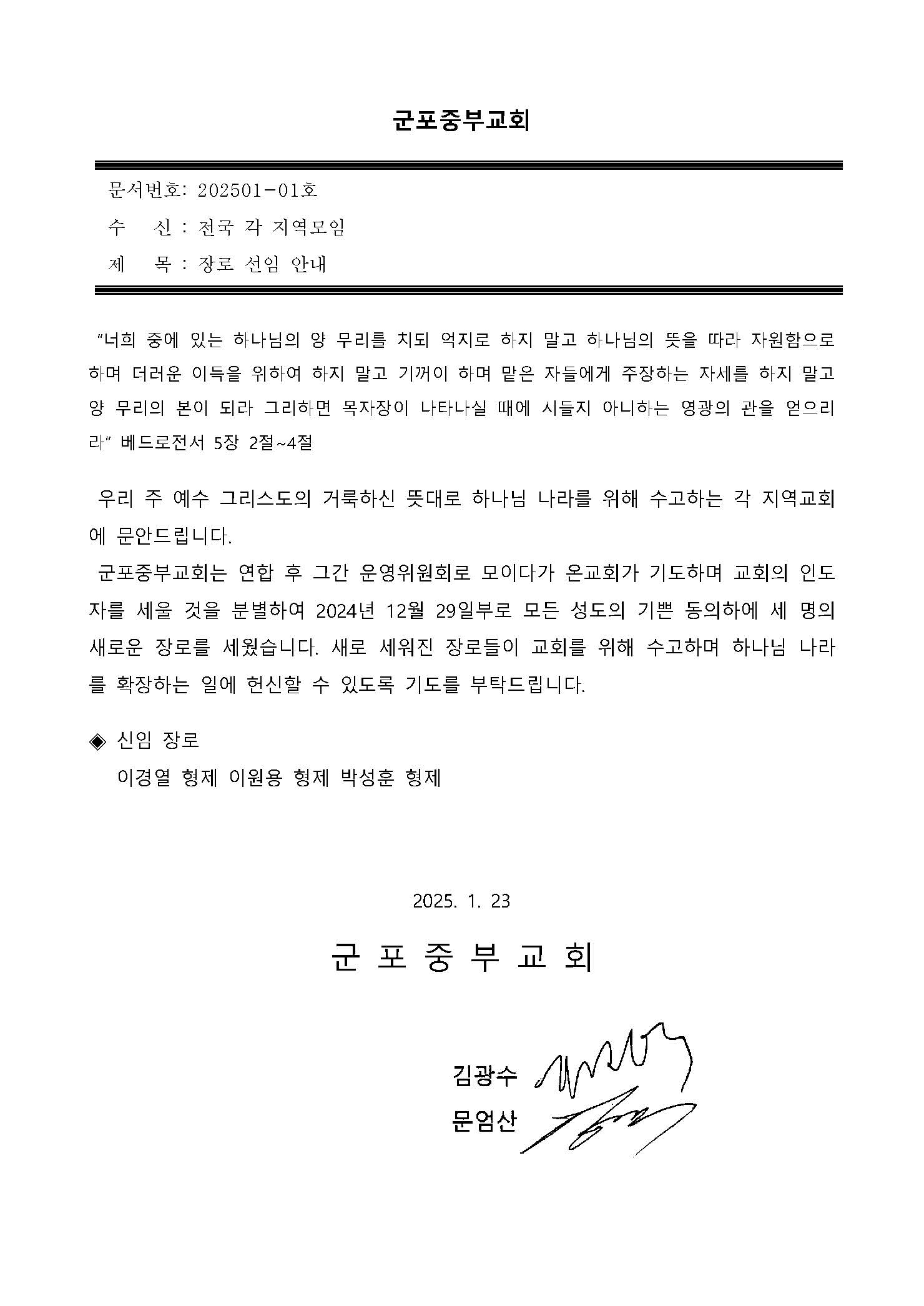 군포중부교회 사역자(이규성형제님) 은퇴식 안내