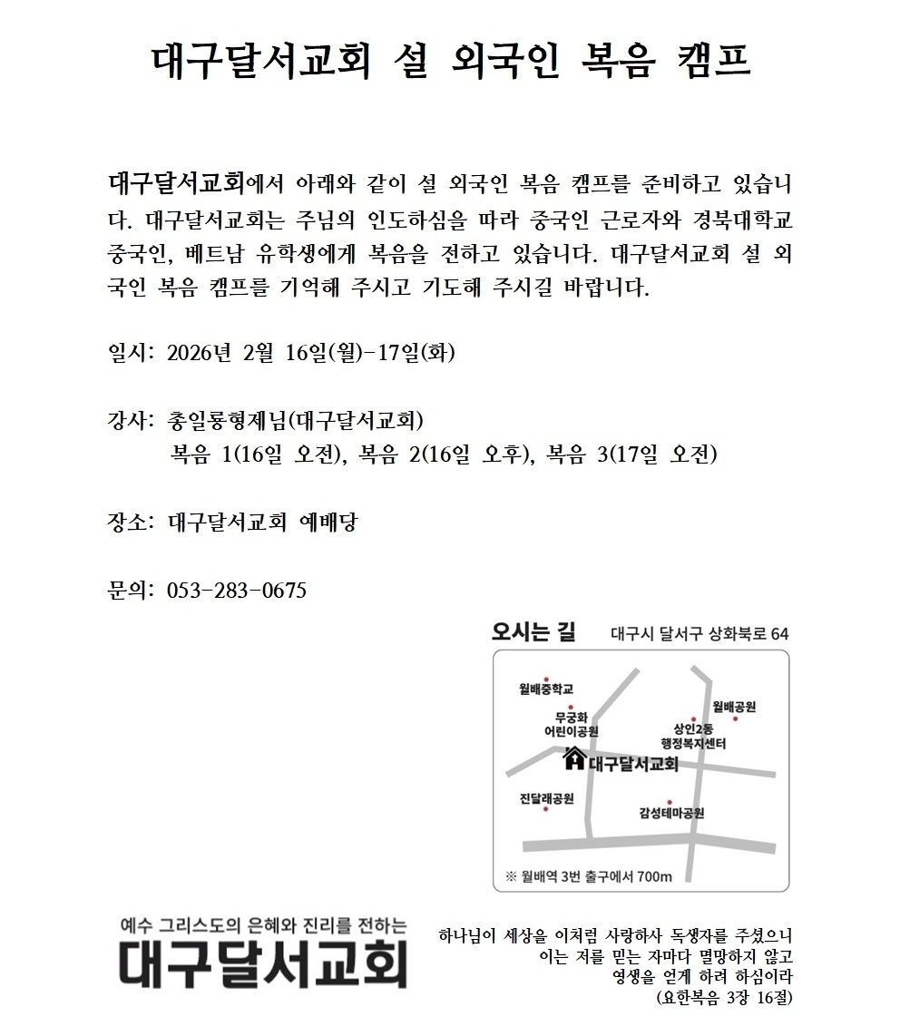 [선교] 외국인 복음 캠프 / 대구달서교회 (2월 16-17일)