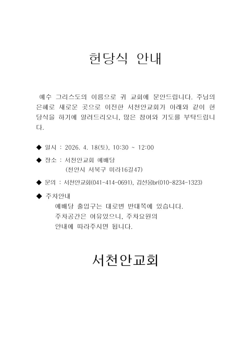 [지역교회] 서천안교회 헌당식 (4월 18일)