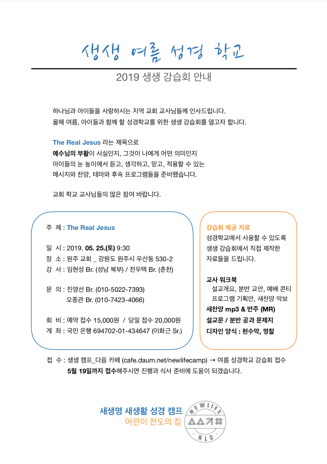 [강습과 세미나] 생생 여름성경학교 강습회(5월 25일)