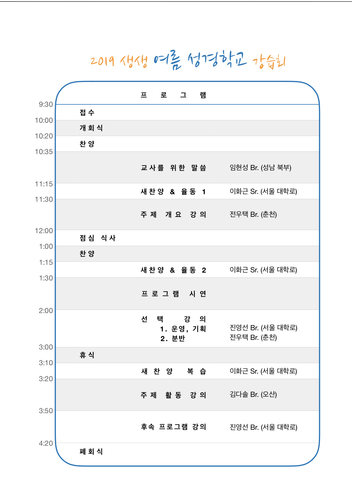 2019 여름 성경학교 강습회가