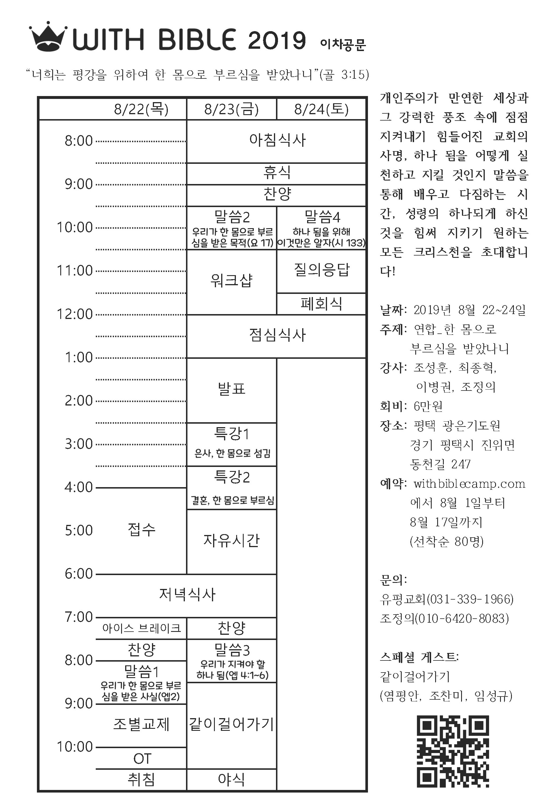 [캠프와 수련회] 2019년 위드바이블캠프(시간표)