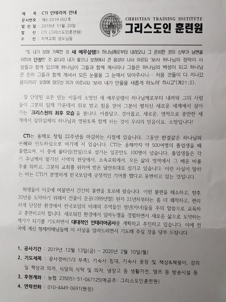 [강습과 세미나] CTI 인테리어 안내 (그리스도 훈련원)