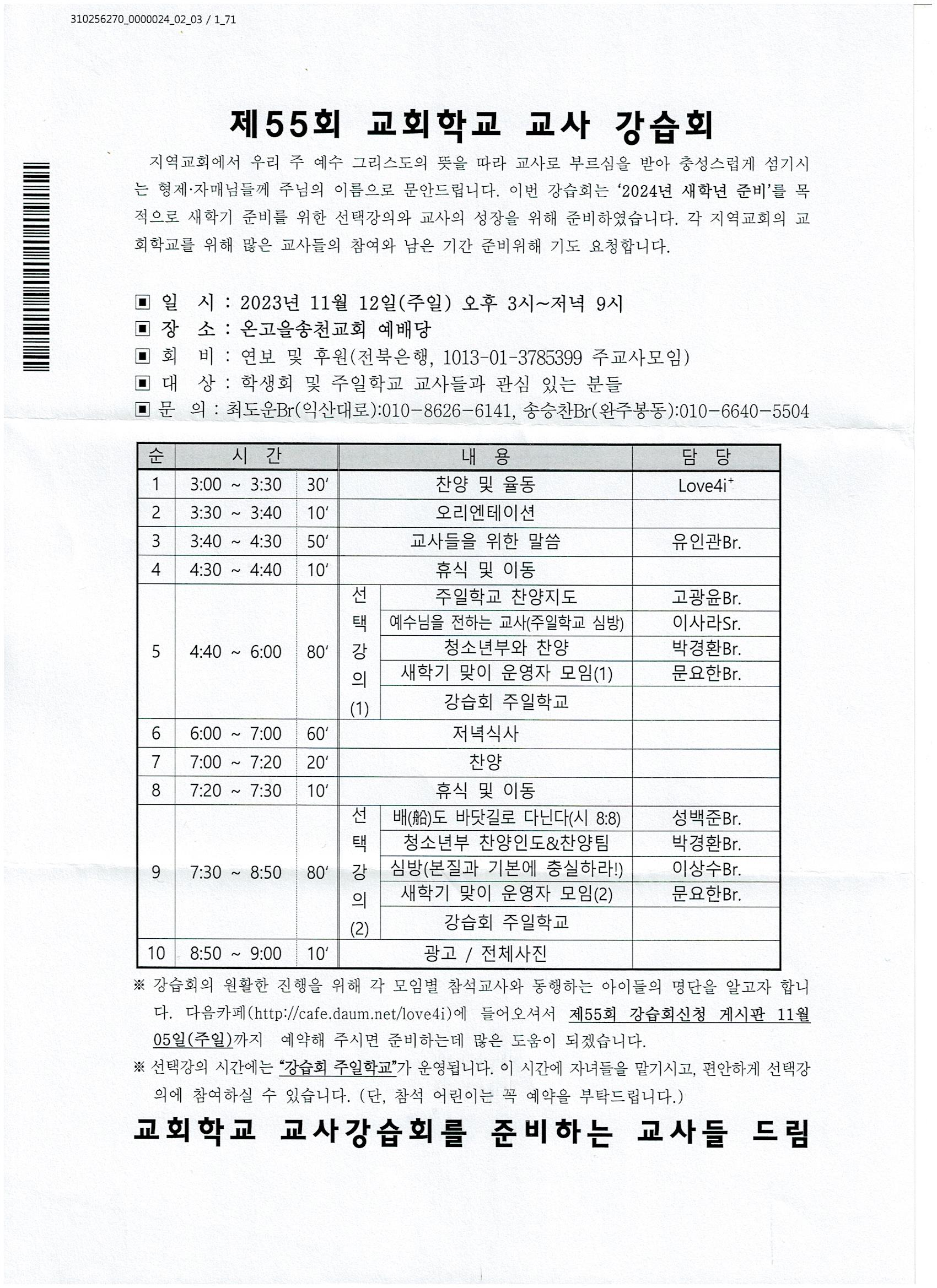 [강습과 세미나] 제 55회 교회학교 교사 강습회 (11월 12일)