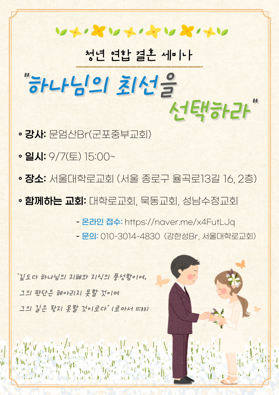[강습과 세미나] 청년연합 결혼 세미나 (9월 7일)