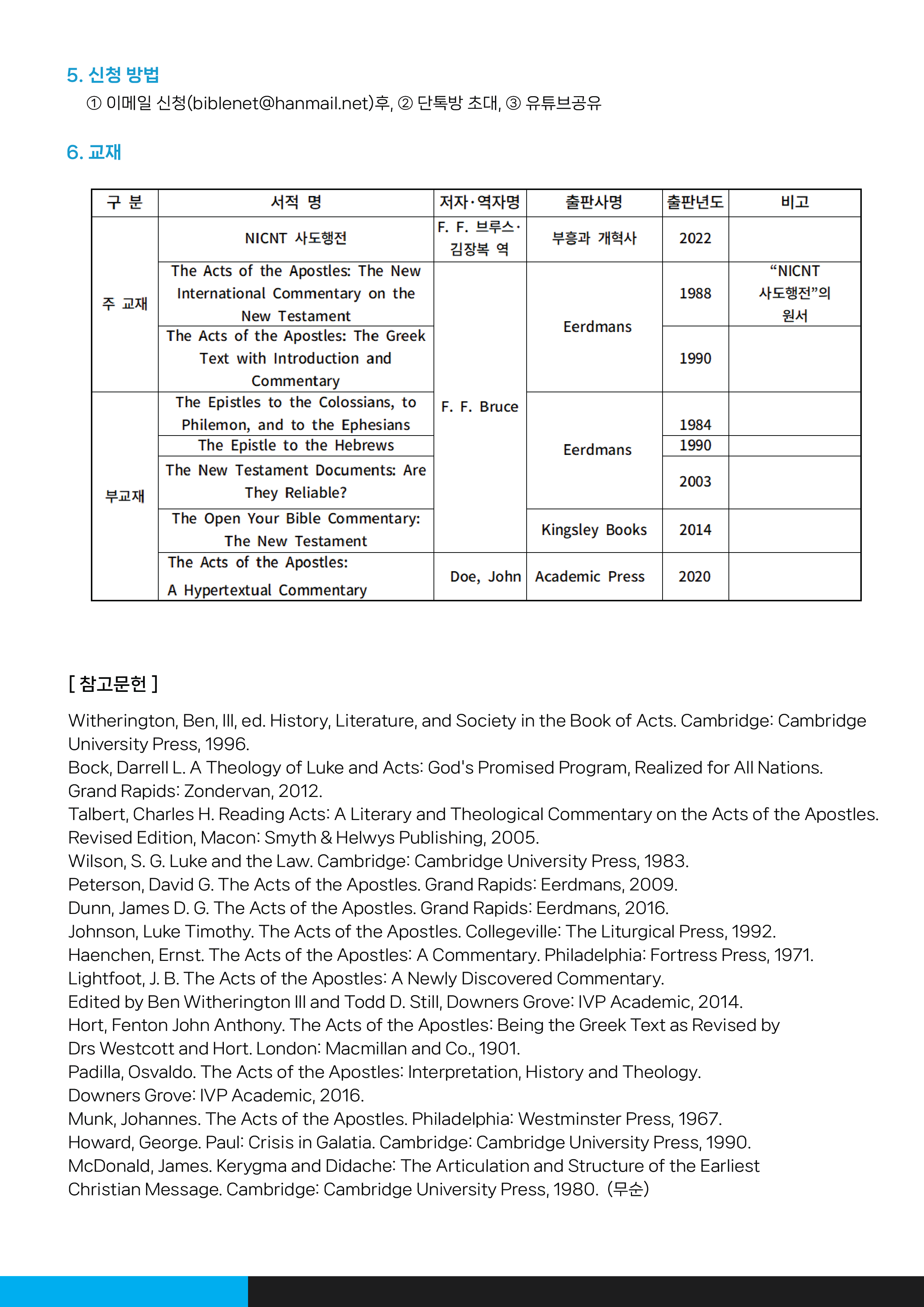 주제: 사도행전 특강(“브루스와 함께 읽는 사도행전”)