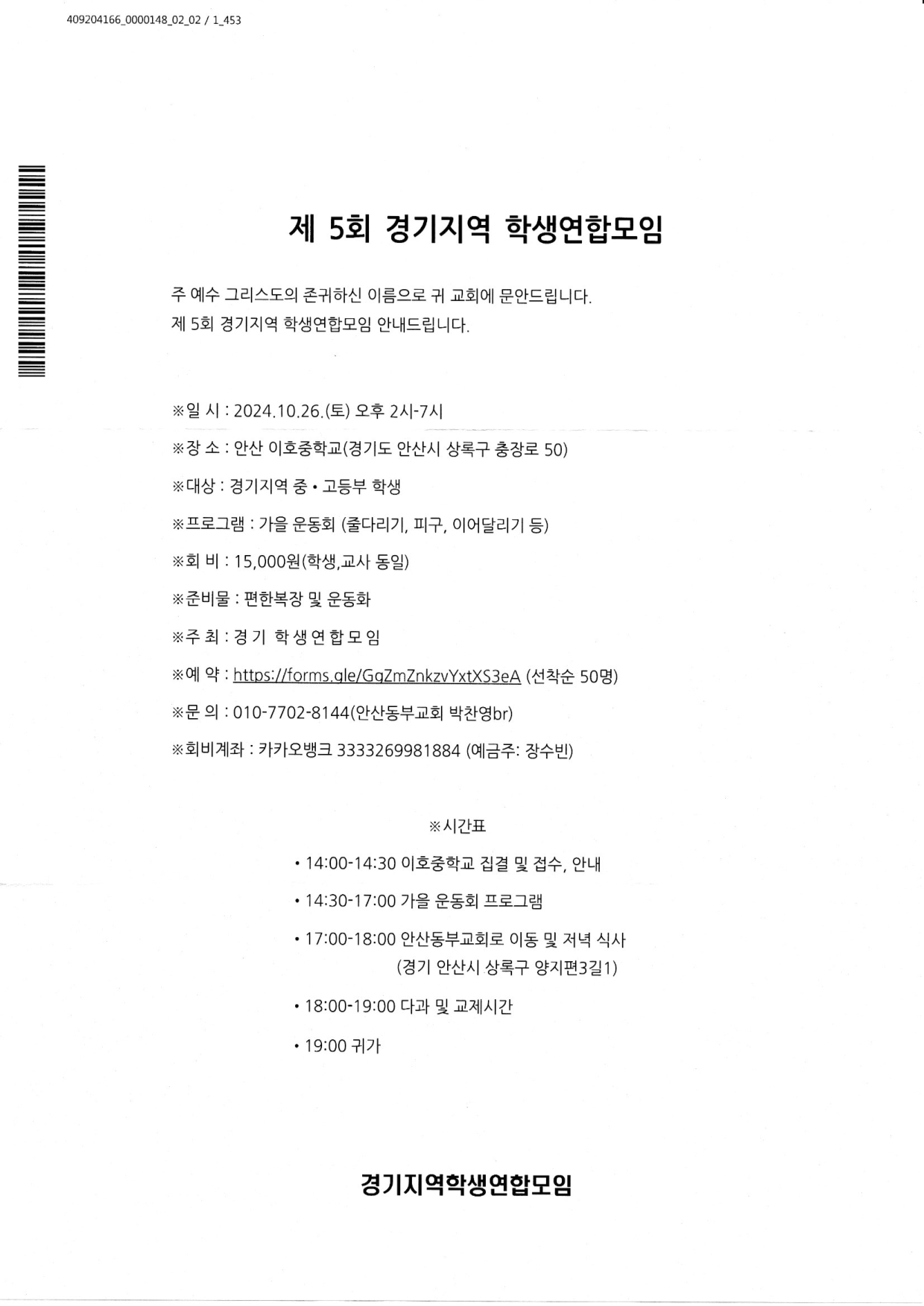 [강습과 세미나] 학생연합모임 (10월 26일)