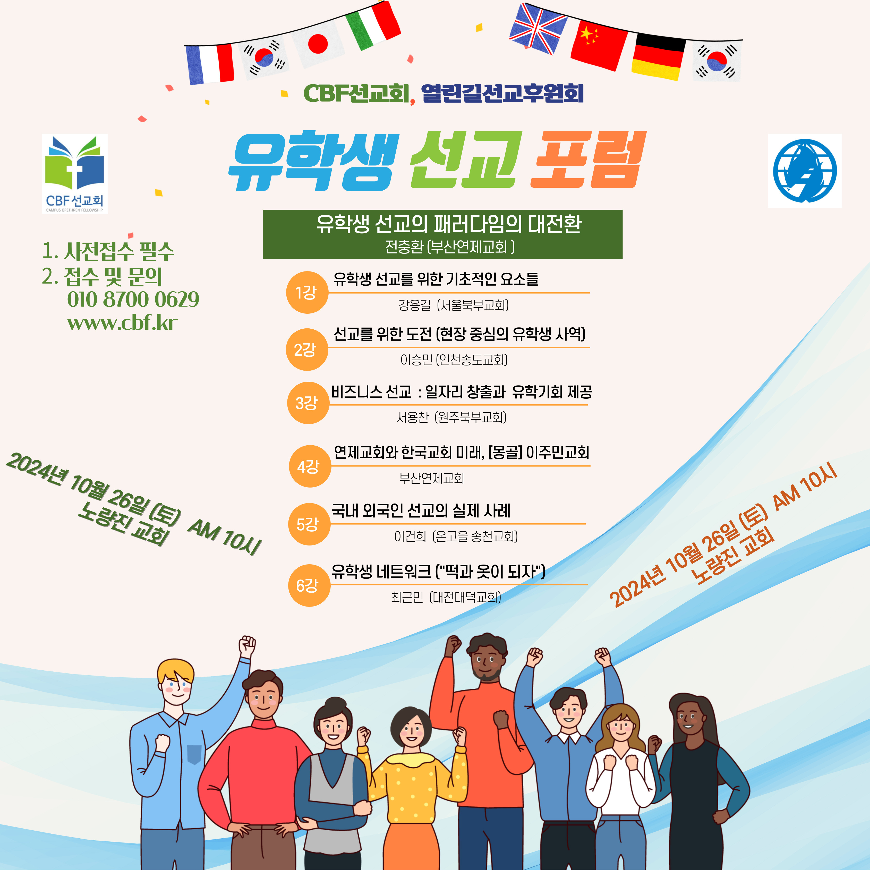 안녕하세요^^ CBF선교회와 열린길선교후원회에서 공동주최하는 "유학생 선교포럼"이 2주 앞으로 다가왔습니다.