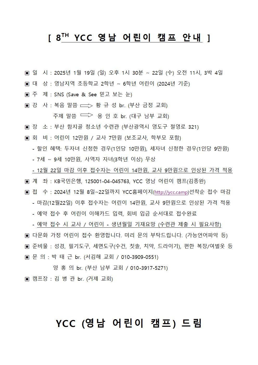 [캠프와 수련회] 8th YCC 영남 어린이 캠프 2차 공문
