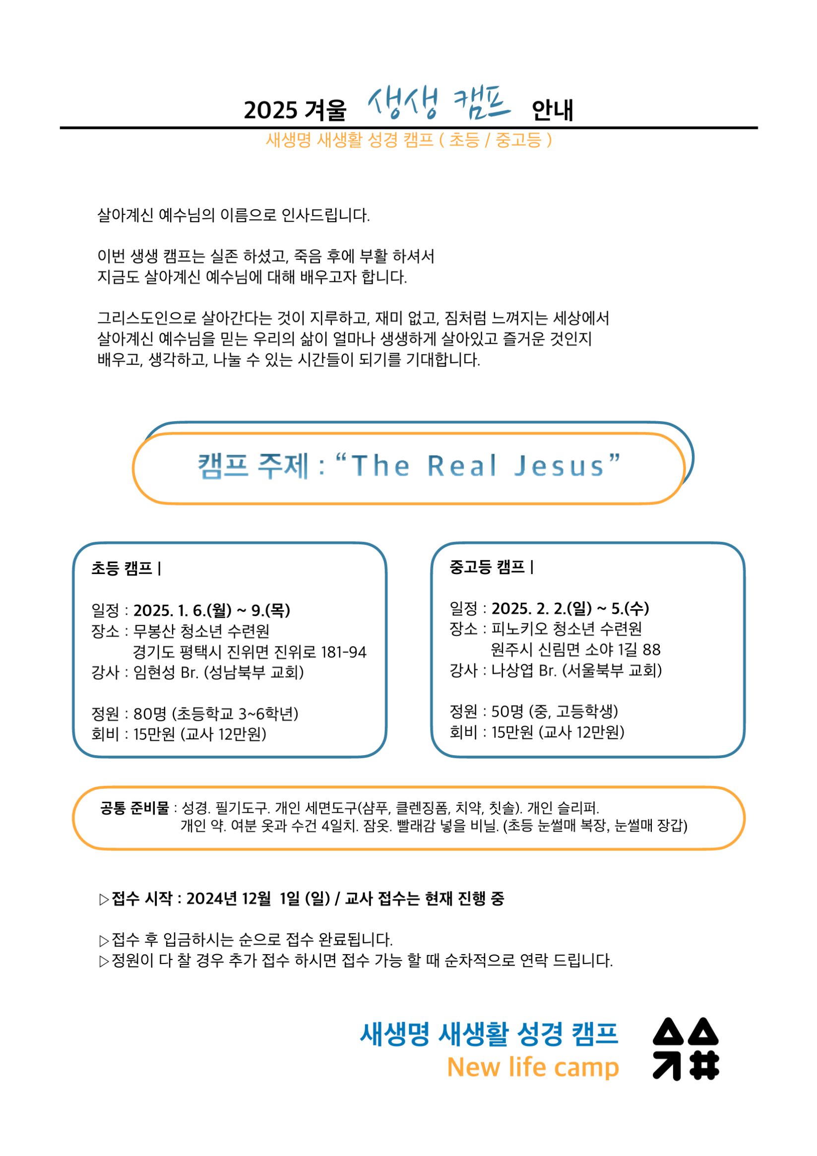 [캠프와 수련회] 25 겨울 생생 학생캠프 안내