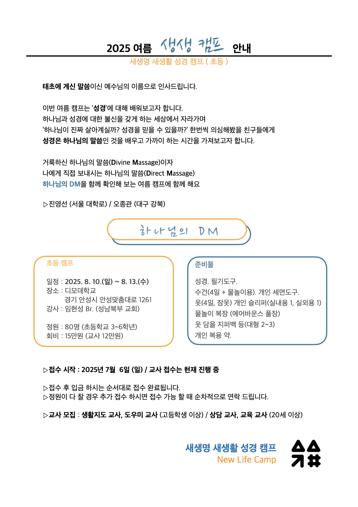 [ 생생 초등 캠프 접수 ] 바로 가기