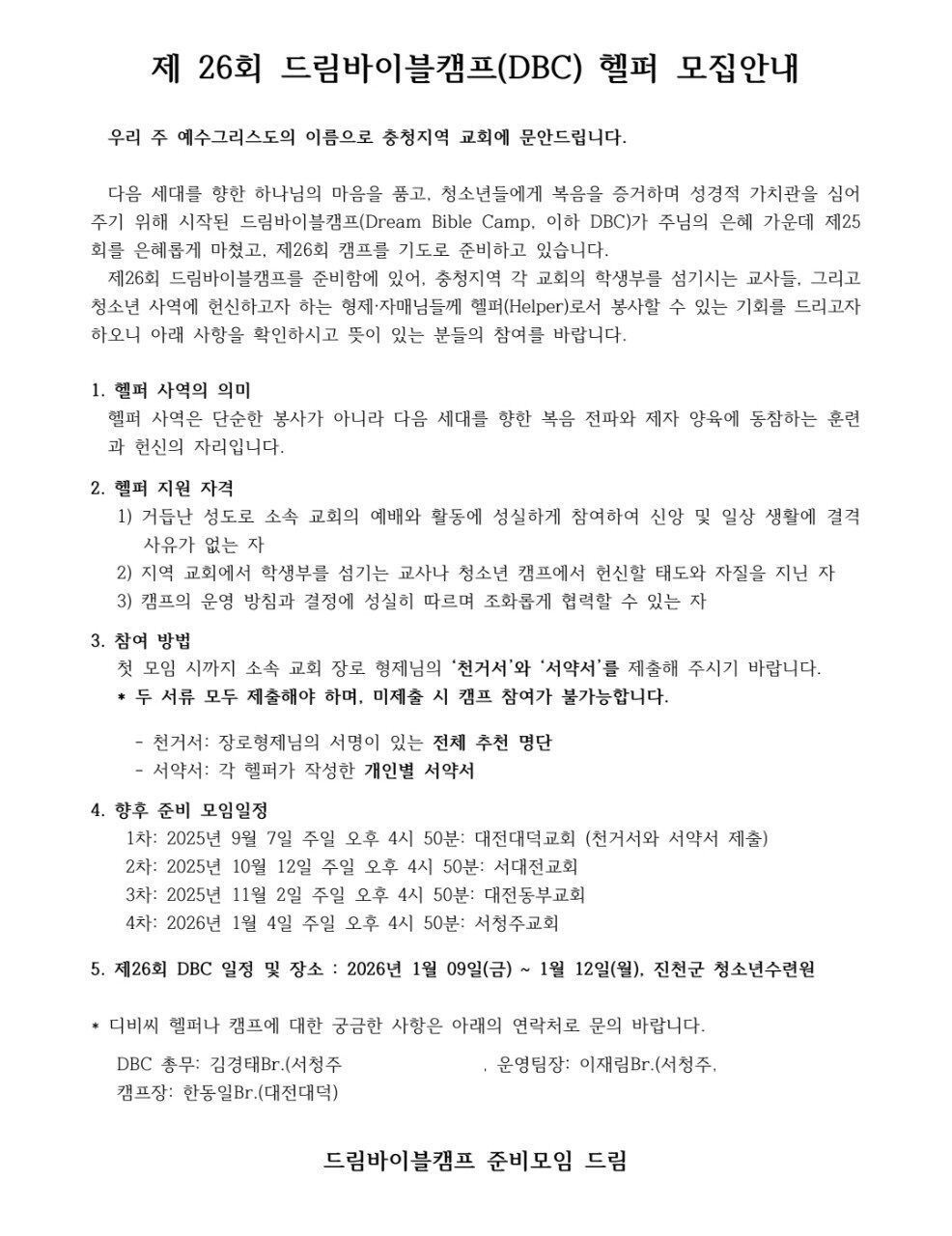 [강습과 세미나] 제 26회 드림바이블캠프 헬퍼 모집