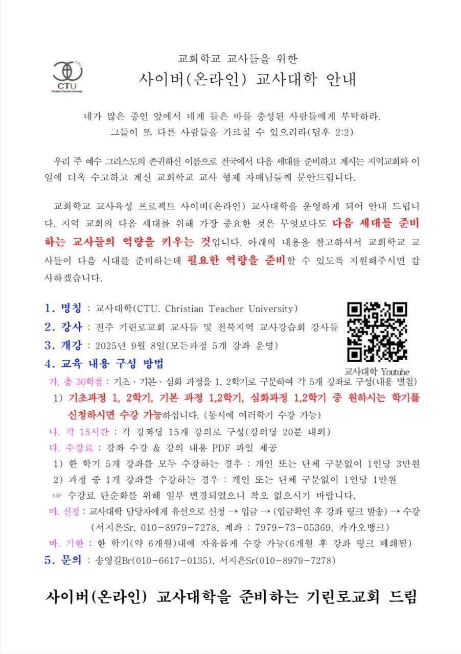 [강습과 세미나] 사이버 교사대학_CTU (9월 8일 개강)