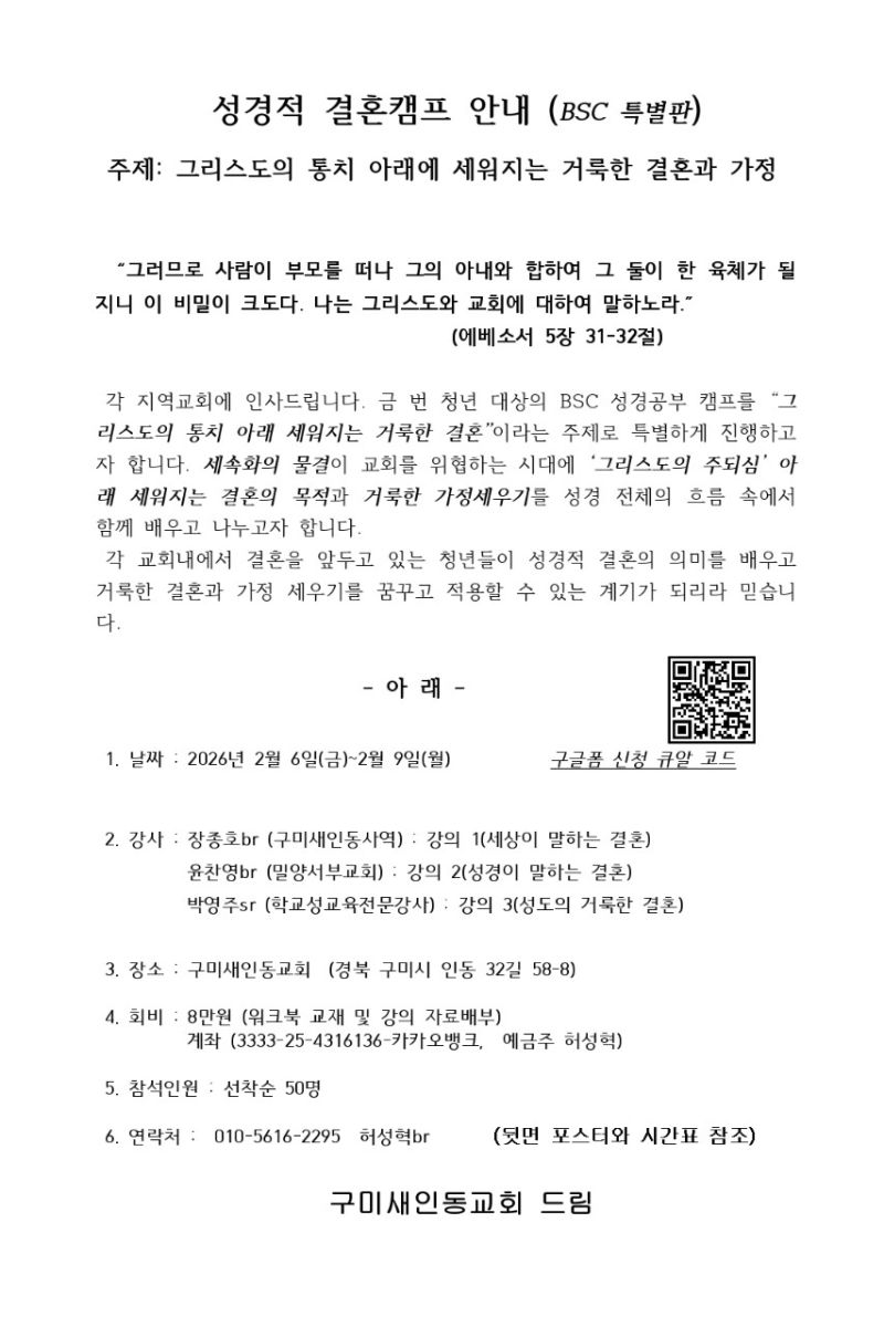 [캠프와 수련회] 그리스도의 통치 아래 세워지는 거룩한 결혼과 가정 (2월 6-9일)