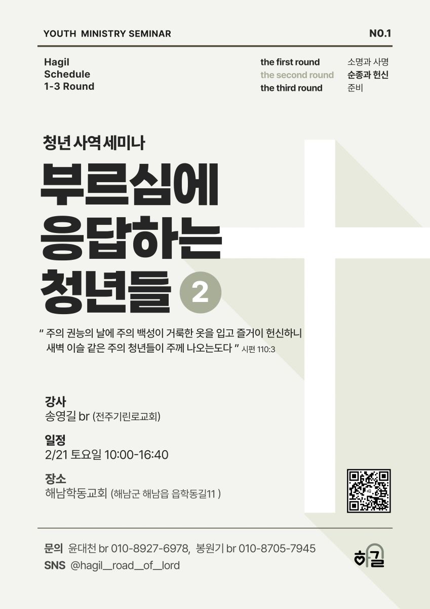 [강습과 세미나] 하길(하나님의 길) 청년 사역 세미나(2월 21일)