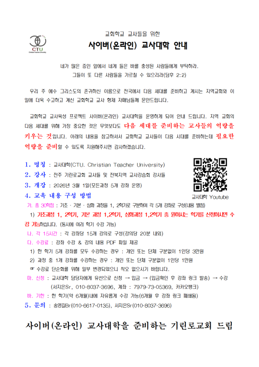 [강습과 세미나] 사이버 (온라인) 교사대학 안내