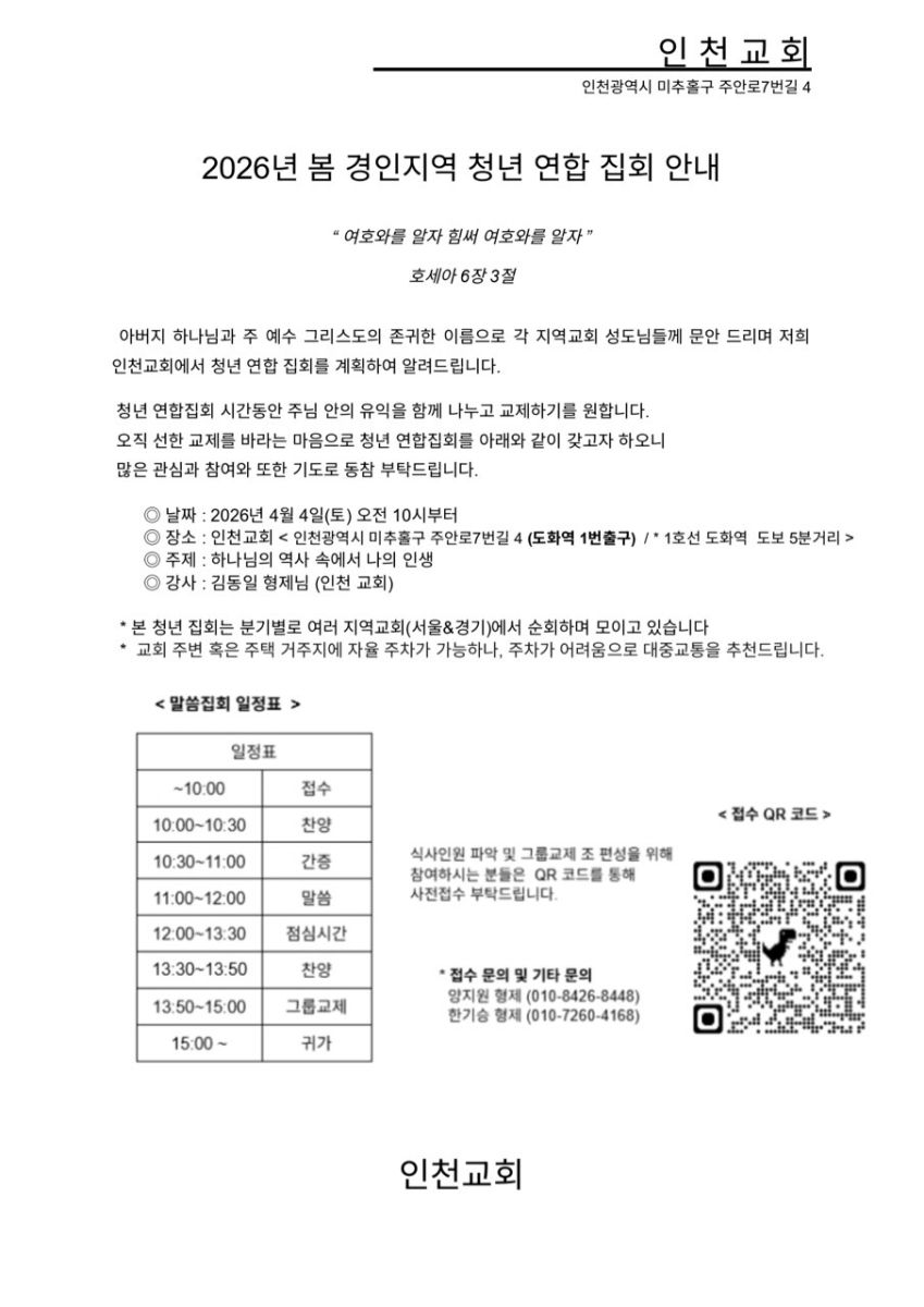 [강습과 세미나] 2026년 봄 경인지역 청년 연합 집회 (4월 4일)