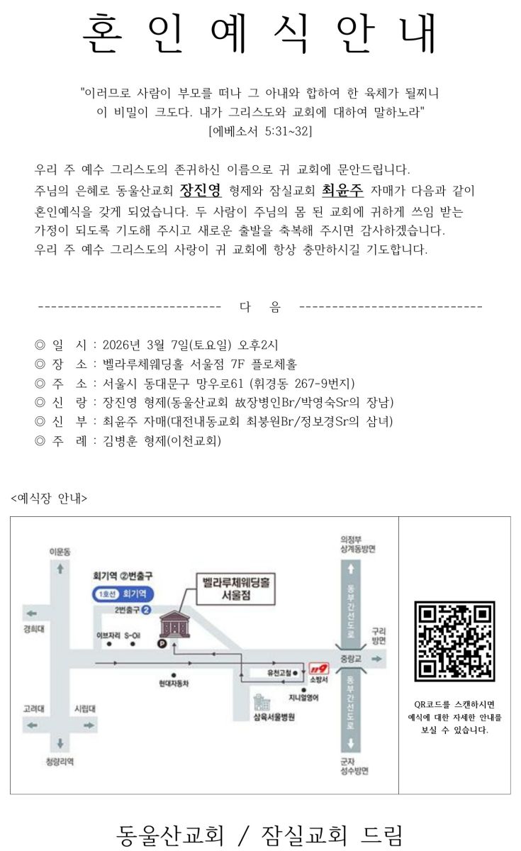 [기쁜소식] 장진영형제, 최윤주자매 (3월 7일)