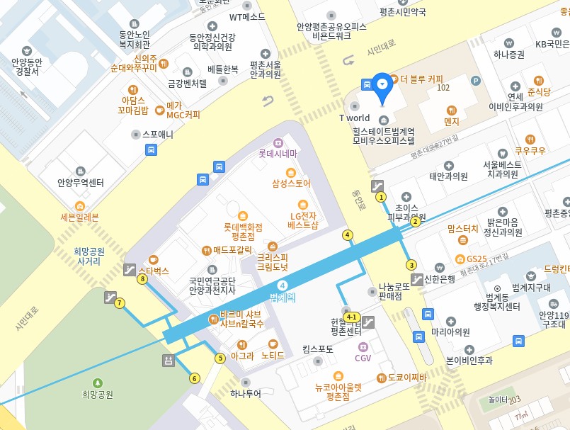 | 주소 : 경기도 안양시 동안구 시민대로 190, 힐스테이트 범계역 모비우스 207호, 208호, 209호, 210호 (호계동) | |
