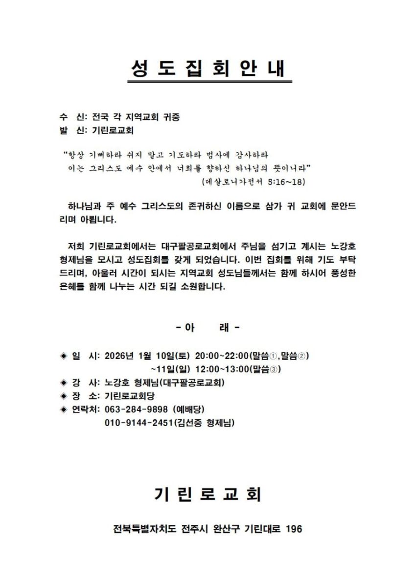 [성도집회] 전주기린로교회 (1월 10-11일)