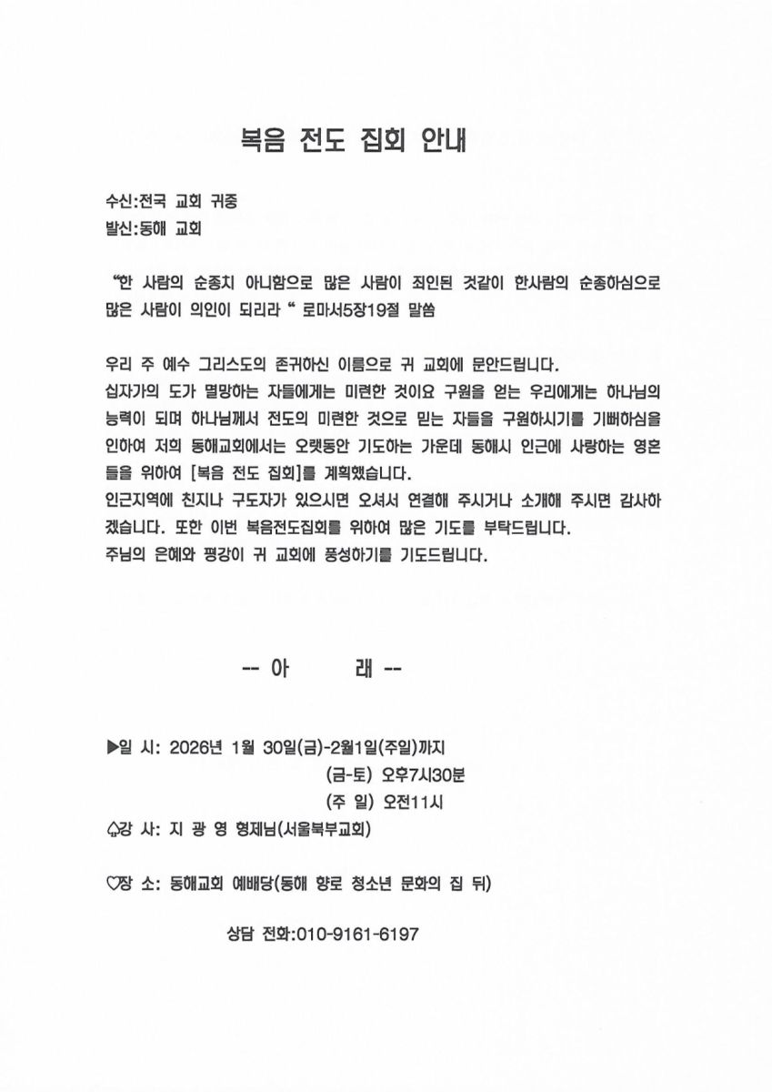[복음집회] 동해교회 (1월 30-2월 1일)