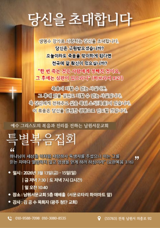 [복음집회] 남원서문교회 (5월 13-15일)