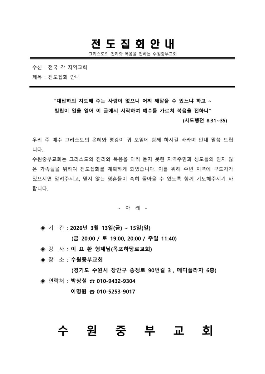 [복음집회] 수원중부교회 (3월 13-15일)