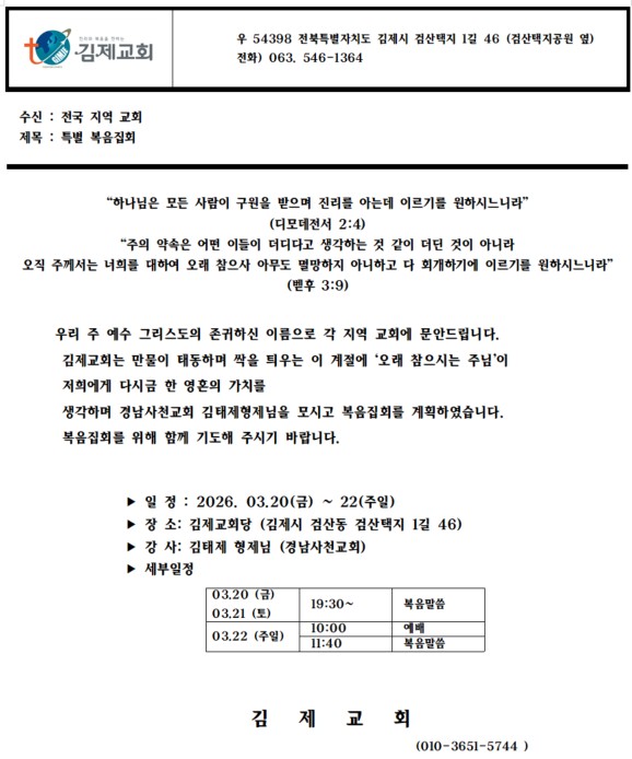 [복음집회] 김제교회 (3월 20-22일)