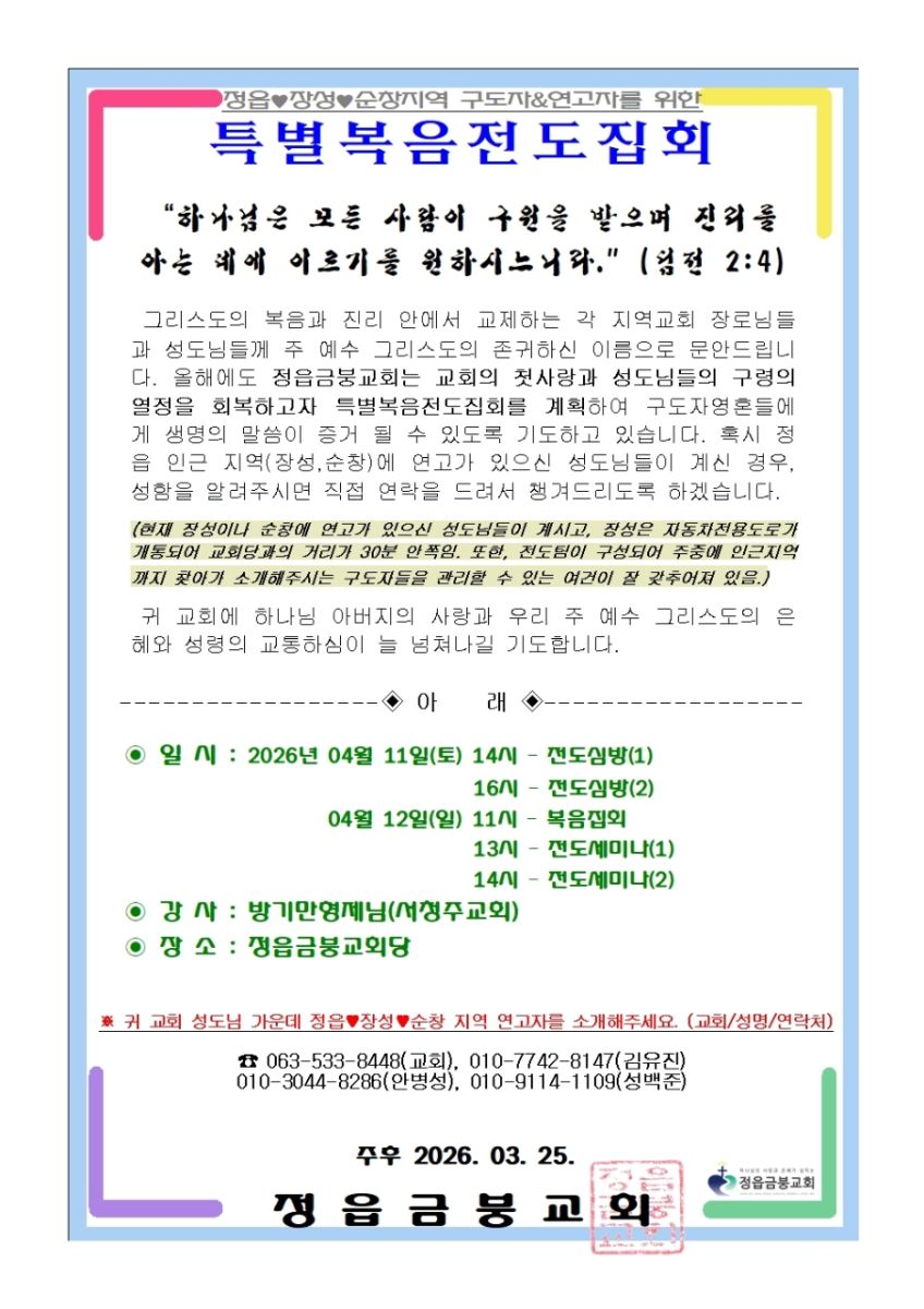 [복음집회] 정읍금붕교회 (4월 11-12일)