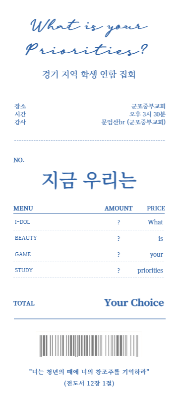세상을 살아가는 그리스도인 학생들로서 우선순위가 무엇인지 함께 나눠보고